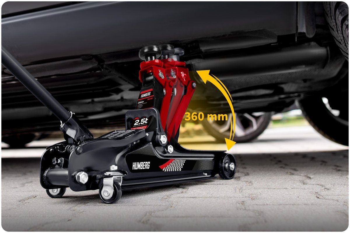 Podnośnik samochodowy 2,5 tHumberg: HM-380NISKOPROFILOWY PODNOŚNIK HYDRAULICZNY✔ Wysokość podnoszenia 80 - 360 mm — podniesie nawet niskie samochody!✔ Udźwig do 2 500 kg — podnośnik idealny do ...