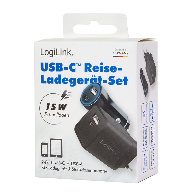 | Nazwa: | Podróżny zestaw do ładowania USB LogiLink, 1x USB-C, 1x USB-A, 15 W, czarny |