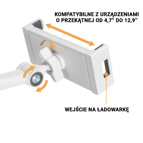 Bez różnicy czy masz duży tablet czy telefon, podstawka od Spacetronik posiada regulację uchwytu i jest kompatybilna z większością urządzeń na rynku. Dodatkowo posiada wygodne wejście na ładowarkę, która umożliwia ładowanie urządzenia podczas używania stojaka.