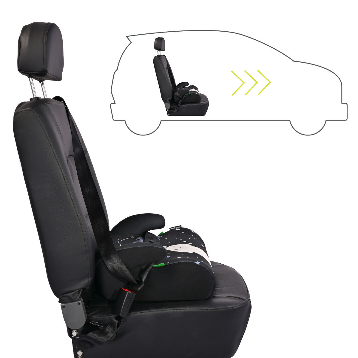 ✔️Podkładkę montuje się zwyczajnym pasem 3‑punktowym samochodu, bez konieczności użycia ISOFIX . ✔️To prosty i intuicyjny sposób na bezpieczeństwo.Montaż pasem 3‑punktowym – prosto i szybko