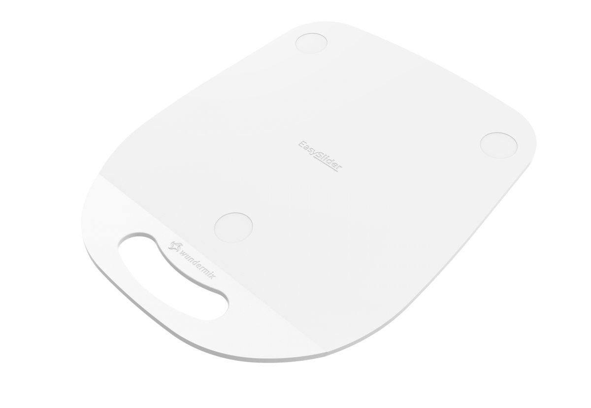 Umieść Thermomix TM5 lub TM6 trzema nóżkami w żebrowanych, zaznaczonych punktach. Aby przesunąć, podnieś uchwyt jedną ręką, aż EasySlider będzie stał tylko na teflonowych ślizgaczach. Dzięki ergonomicznej rękojeści i niewielkiej wadze EasySlider robot kuchenny można teraz bardzo łatwo chwycić, podnieść i bezpiecznie przesuwać w przód iw tył na wszystkich powierzchniach. Gumowe stopery zapewniają bezpieczne i stabilne ustawienie na powierzchni roboczej po opuszczeniu.