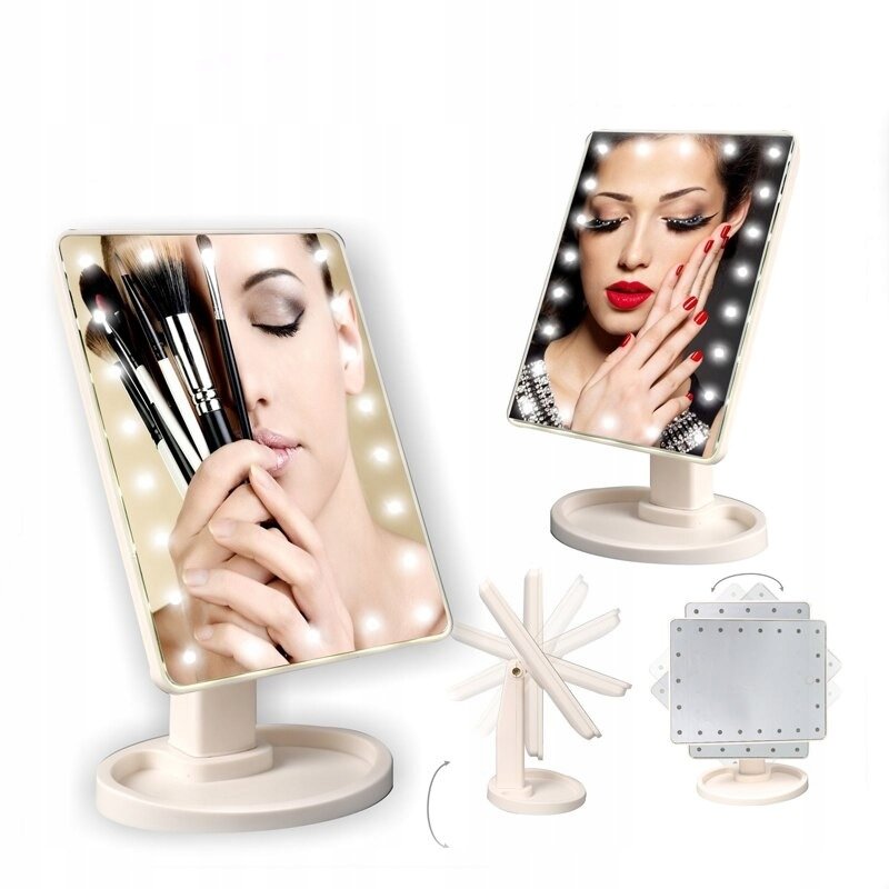 Lustro z oświetleniem LED, dzięki któremu możesz wyraźnie zobaczyć najdrobniejsze szczegóły na swojej twarzy, ma możliwość obrotu o 360 stopni ( przód ,tył) oraz o 90 stopni (od lewej do prawej ) .Posiada również możliwość ściemnienia światła.