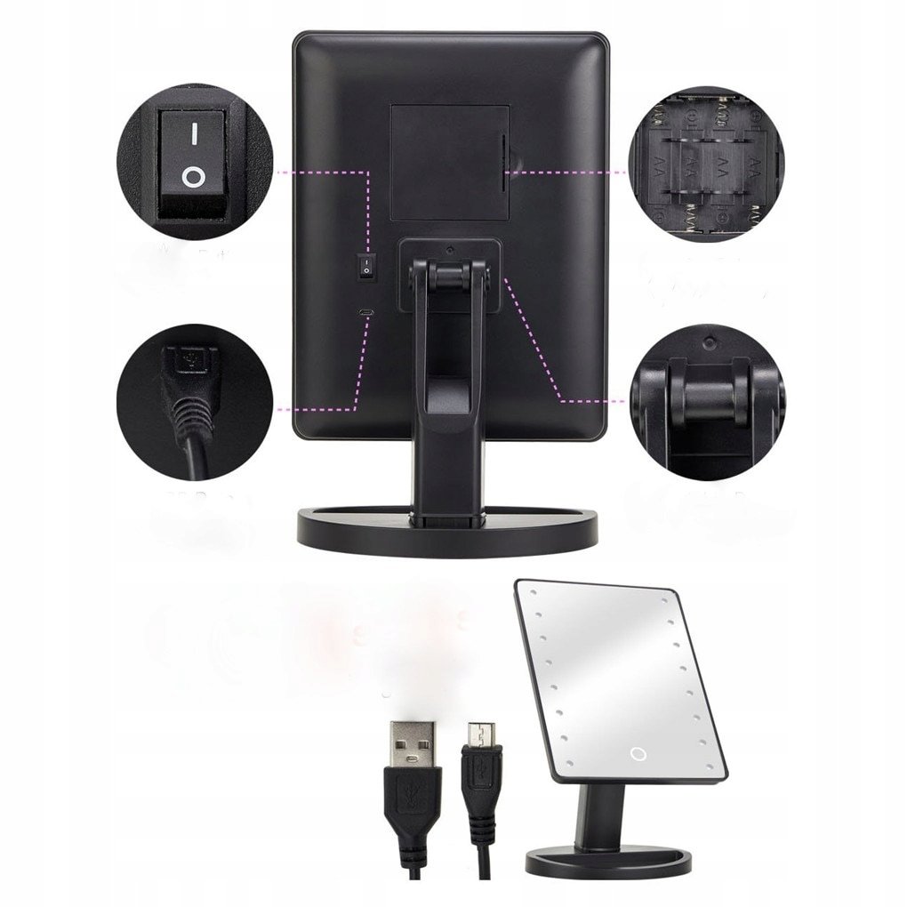 Podświetlane lusterko do makijażu LED, czarne✅ Podświetlane lusterko do makijażu LED, czarne - idealne dla każdej osoby, która ceni sobie dokładność w makijażu.✅ 22 diody LED zapewnią idealne ...