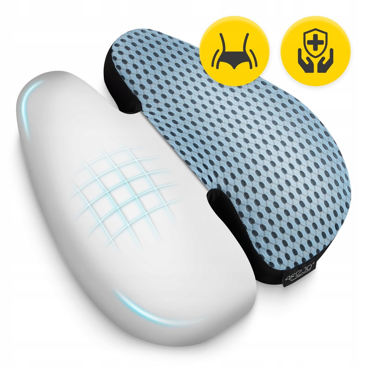 Poduszka do siedzenia na kręgosłup lędźwiowy ma ergonomiczny kształt. Idealnie dopasowuje się do kształtu pleców. Idealnie wypełnia zakrzywienie kręgosłupa w odcinku lędźwiowym, dając stabilne podparcie. Poduszka pozwala na utrzymanie prawidłowej postawy ciała, bez zbędnego wysiłku. Dzięki otwartej przestrzeni na kręgosłup odciąża plecy i zmniejsza ucisk. Poduszka może zmniejszyć napięcia, które są jedną z najczęstszych przyczyn bólów kręgosłupa, a w tym odcinka lędźwiowego.
