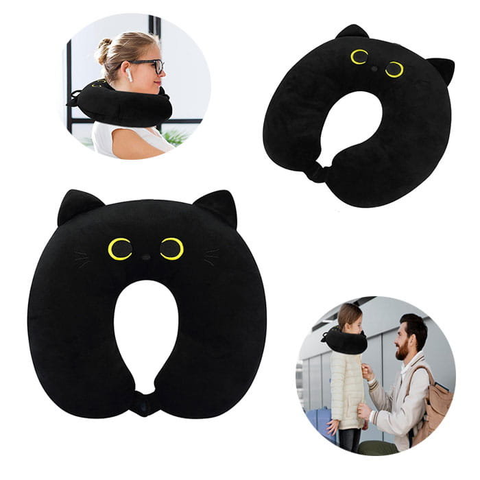✔️Poduszka podróżna o wymiarach 30x30 cm jest stylizowana na postać czarnego kota.