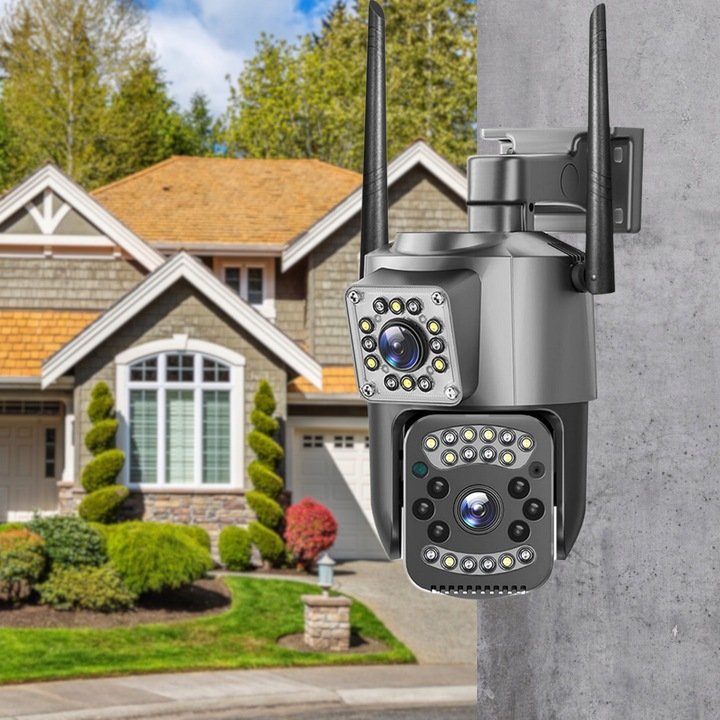 ✅PODWÓJNA KAMERA WIFI IP SMART ZEWNĘTRZNA OBROTOWA 4MPX APLIKACJA ZOOM PUSH ⭐KAMERA WIFI Z PODWÓJNYM OBIEKTYWEM Kamera IP Wi-Fi V-44 PRO to zaawansowane urządzenie do monitoringu, ...