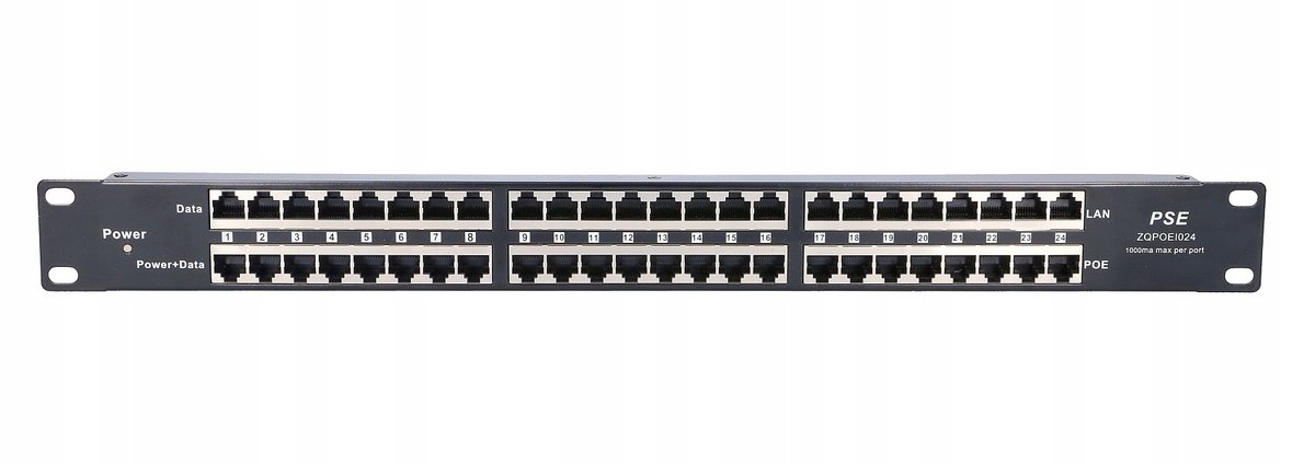 Listwa zasilająca Extralink posiada 24 porty o przepustowości 10/100 Mbit/s. Górne gniazda RJ45 to porty LAN/switch/PC, gdzie piny 1/2 oraz 3/6 służą do przesyłania danych. Gniazda położone poniżej to porty przesyłające zarówno dane, jak i zasilanie, gdzie piny 1/2 oraz 3/6 służą do przesyłu danych, a piny 4/5 (+) oraz 7/8 (-) do przesyłania zasilania. Rozmiar listwy zasilającej: 1U (wysokość), 19” (szerokość) i 25 mm (grubość).