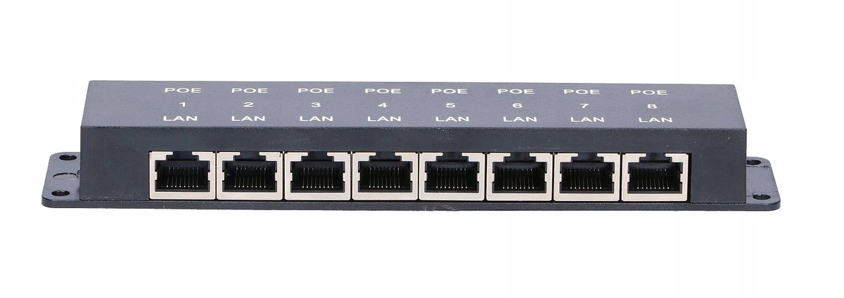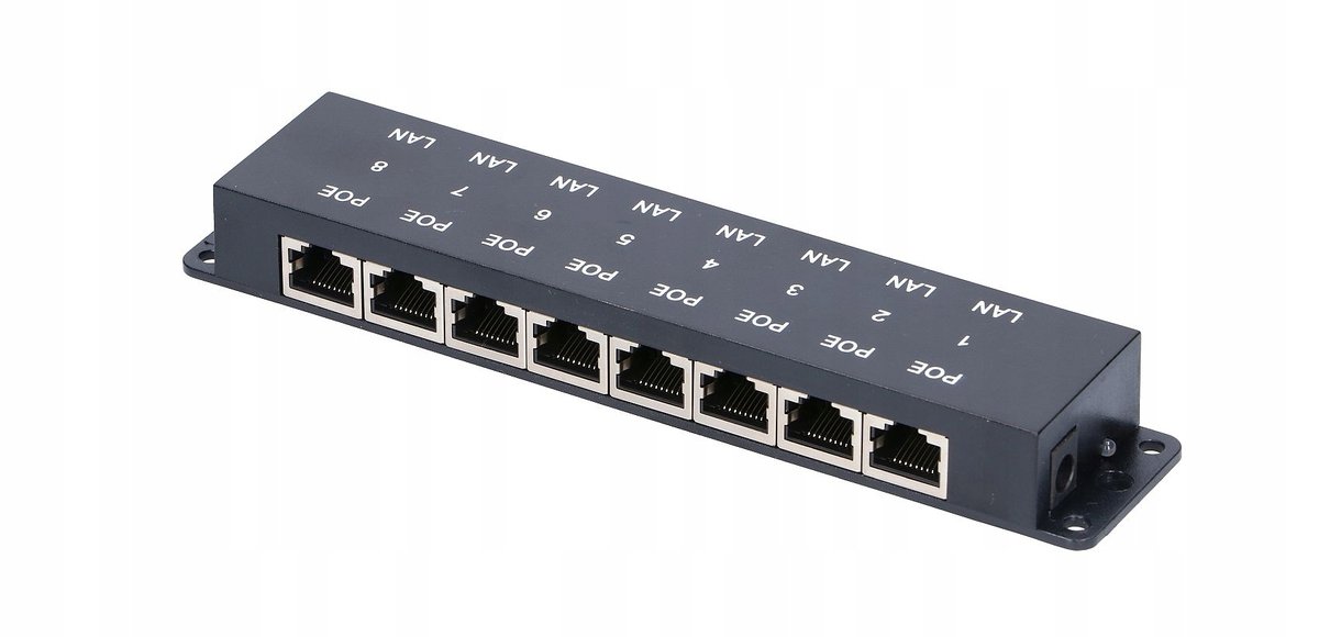 Listwa zasilająca PoE, dzięki której możesz zasilić do 8 urządzeń napięciem od 12V do 48V.