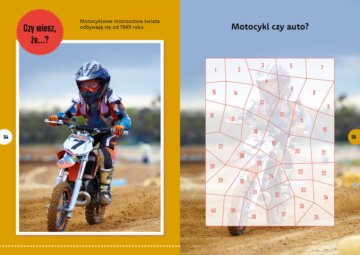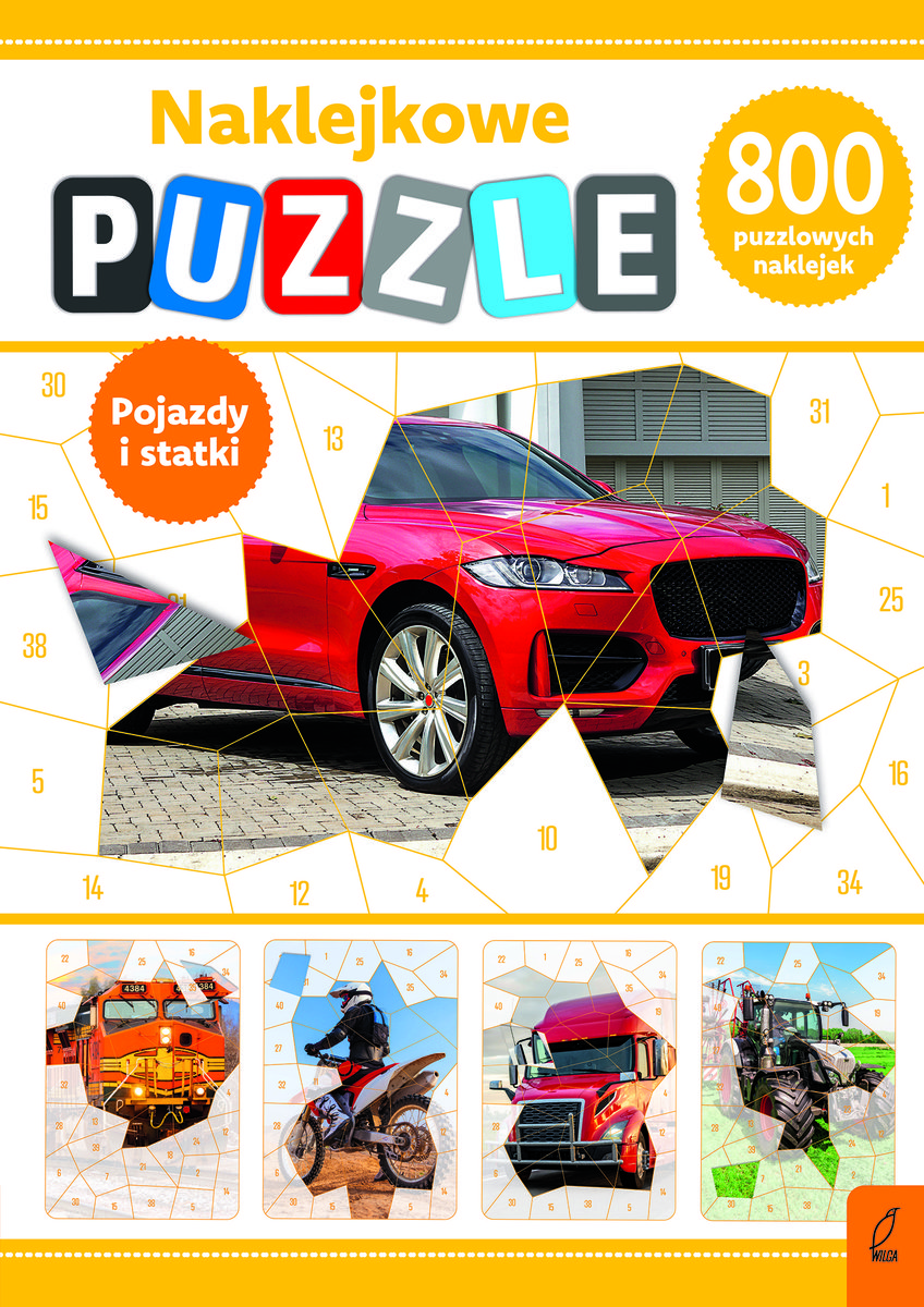 Naklejkowe puzzle” to seria, która nie tylko zapewni ogrom świetnej zabawy na wiele godzin, lecz także pozytywnie wpłynie na rozwój wyobraźni i zdolności manualnych u małego odkrywcy. Znajdziesz tu aż 20 stron naklejkowych puzzli (to aż 800 naklejek!), które pozwolą stworzyć obrazki z pojazdami i statkami, a także kilkanaście kolorowanek z kodem i wiele ciekawostek o pojazdach. To nie jest zwykła książka – to naklejkowa przygoda!