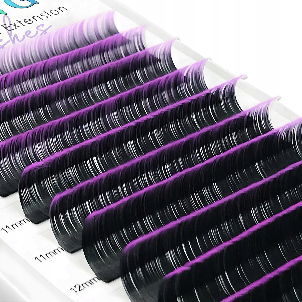 Pojedyncze Kolorowe Rzęsy do przedłużania8-15mm, curl D, 12 paskówCzarno-Fioletowe ombre Pojedyncze Rzęsy Kolorowe do przedłużaniaZestaw 6 długości:8mm, 9mm, 10mm, 11mm, 12mm, ...