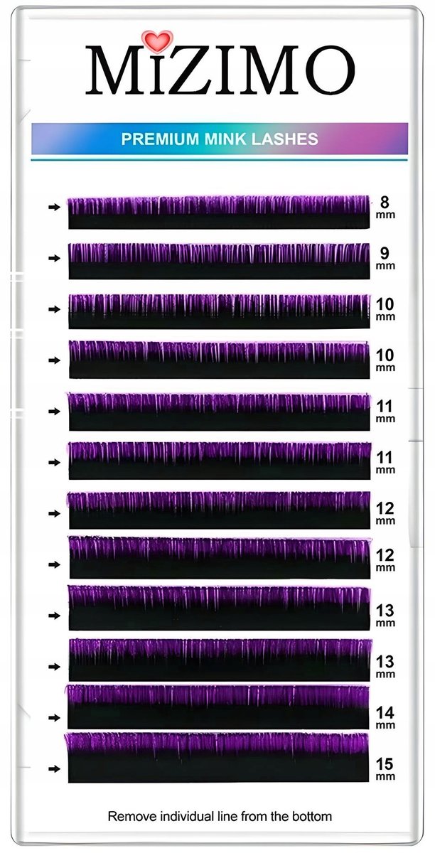 | Nazwa: | Pojedyncze Kolorowe Rzęsy 8-15mm, skręt D, 12 pasków CZARNO-FIOLETOWE |