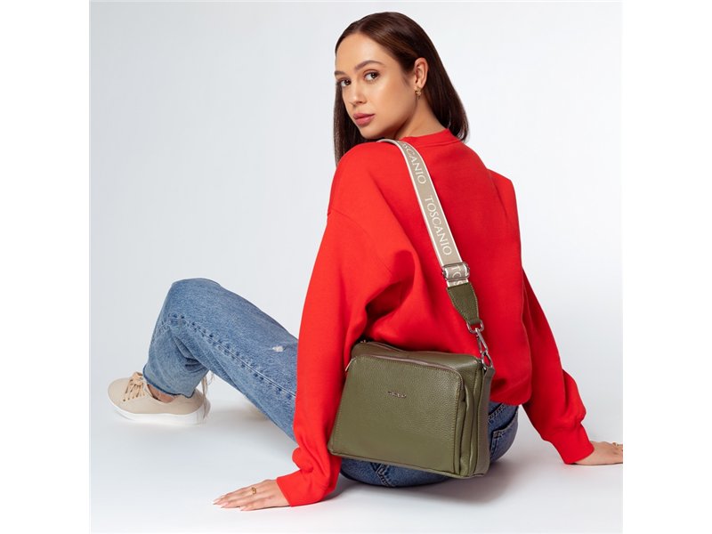 Pojemna listonoszka E16 od marki Toscanio to doskonały wybór dla nowoczesnych kobiet ceniących sobie styl i funkcjonalność. Wykonana z wysokiej jakości skóry licowej groszek, łączy elegancję z praktycznością. Doskonale komponuje się z różnorodnymi stylizacjami, zarówno na co dzień, jak i na wyjątkowe okazje.