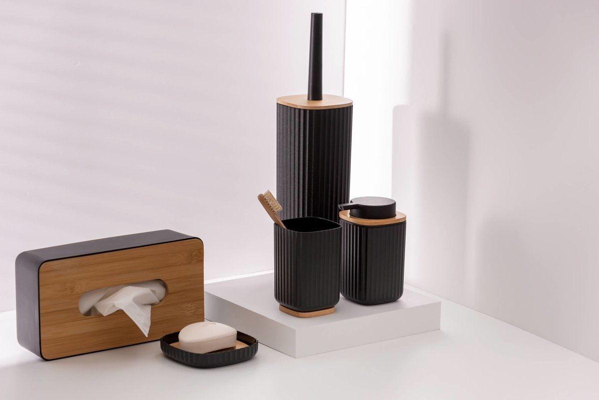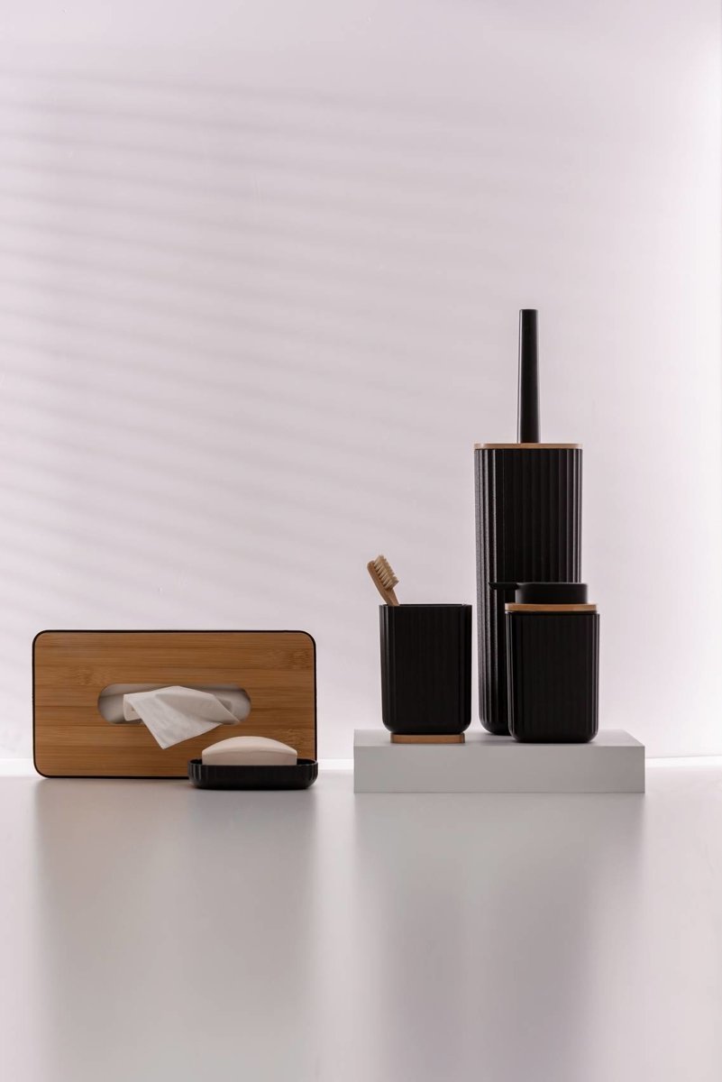 Pojemnik wykonany jest z lekkiego, ale wytrzymałego tworzywa sztucznego, co czyni go idealnym rozwiązaniem do codziennego użytku. Jego ryflowane ścianki dodają wizualnej atrakcyjności, a dostępność w dwóch kolorach – białym i czarnym – sprawia, że z łatwością dopasujesz go do swojego wnętrza. Oba kolory doskonale komponują się z naturalnym odcieniem bambusa, co nadaje mu nowoczesny charakter.