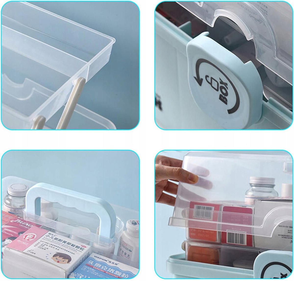 Nasz pojemnik jest przestronny i pojemny, pomieści nie tylko opakowania z lekami, ale także wszelkie inne artykuły medyczne, takie jak bandaże, opatrunki, termometr i wiele innych.