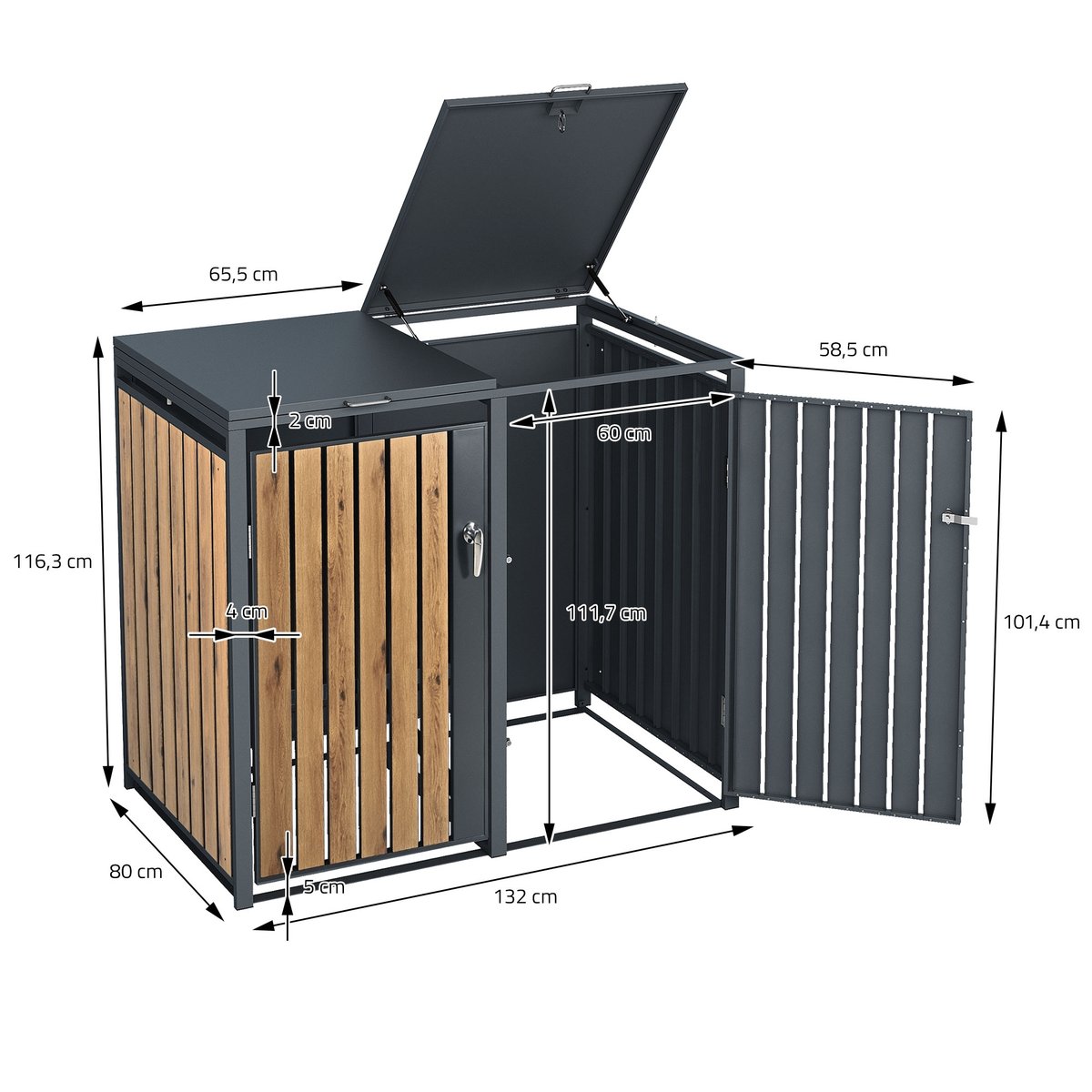 Właśnie zrecenzowałem Pojemnik na odpady na 3 pojemniki 240L 200x80x116,3 cm antracytowy dąb stalowy ML design