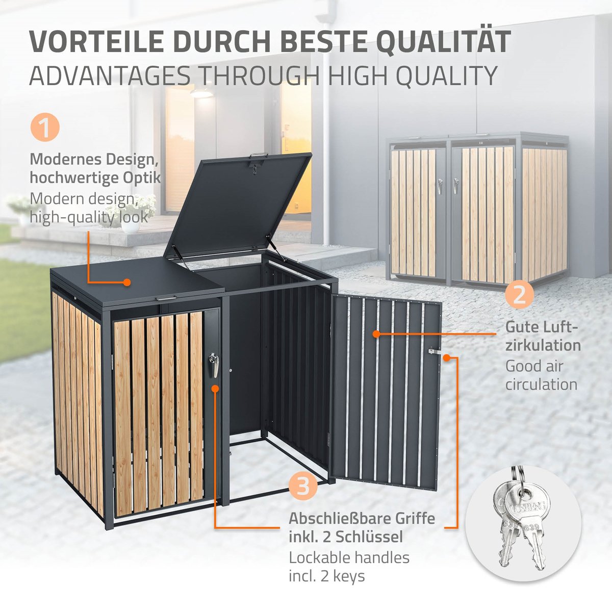 Przechowuj pojemnik na odpady poza zasięgiem wzroku w ogrodzie i utrzymuj porządek i estetykę na zewnątrz dzięki naszemu pojemnikowi na odpady!
