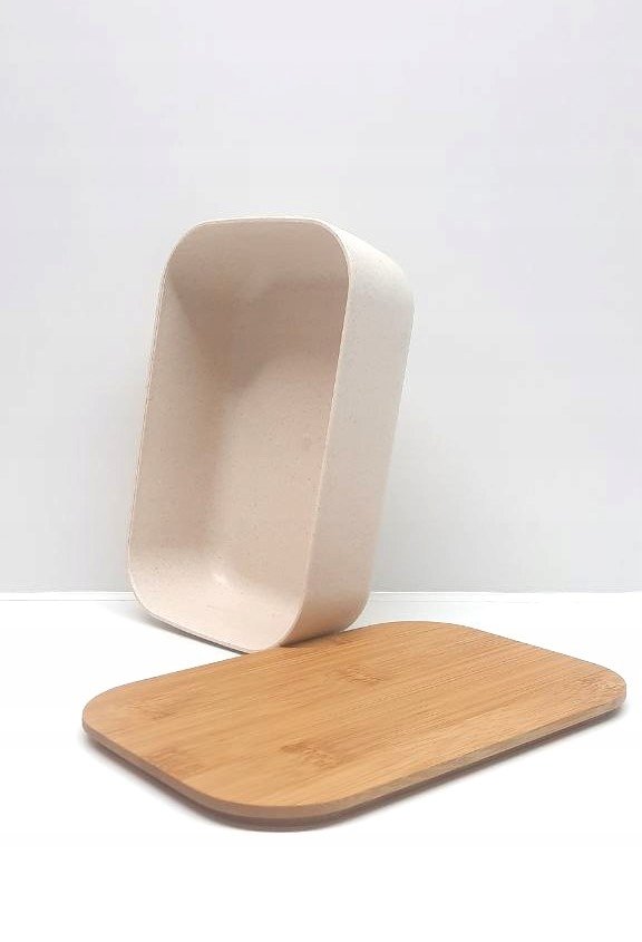 Pojemnik na obiad lunch z pokrywką bambus Zestaw na obiad o łącznych wymiarach 18,5cm x 11,5 cm x 6 cm doskonale się sprawdza dla osób ceniących sobie własną kuchnię.