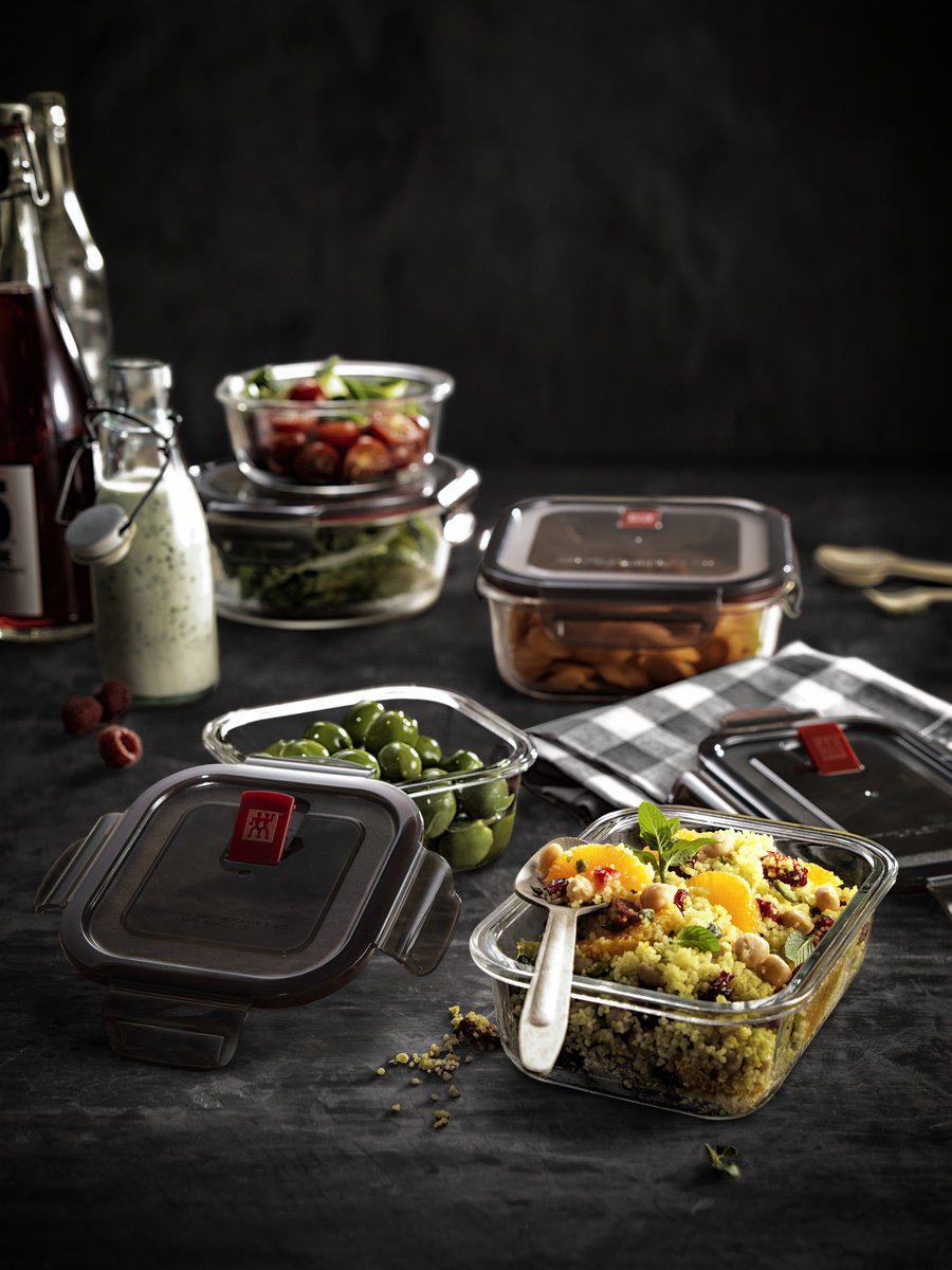 Jeden za wszystko: okrągły szklany pojemnik ZWILLING Gusto o pojemności 600 ml lub 1.3 ltr będzie zawsze pod ręką, kiedy zajdzie potrzeba przechowania, przygotowania bądź też podania produktów ...