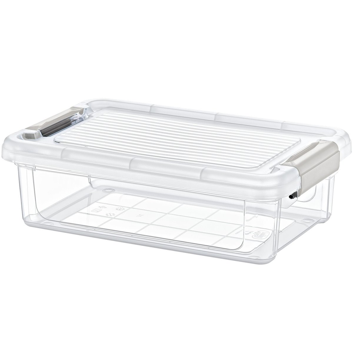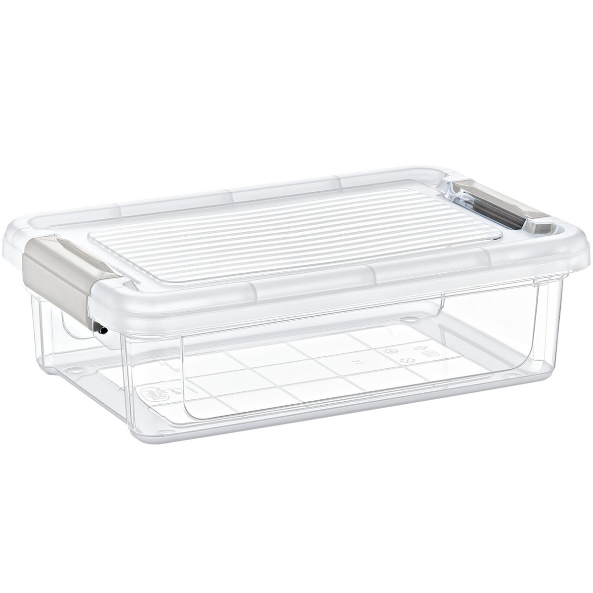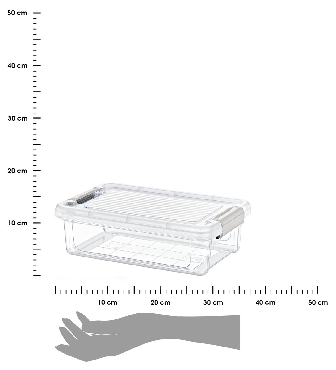 Klasyczny pojemnik, pudełko z pokrywą wyposażoną w klipsy do zamykania do przechowywania wszelkiego rodzaju artykułów domowych czy też biurowych. Całość wykonana z przeźroczystego tworzywa wyposażona w pokrywę z klipsami w kolorze jasnego beżu, zapewniając jej solidne zamocowanie. Dzięki nowoczesnemu wzornictwu gustownie wygląda w każdym pomieszczeniu. Pudełko pomaga utrzymać rzeczy w odpowiednim porządku, a przeźroczyste tworzywo umożliwi łatwe ich odnalezienie, w momencie, gdy znów są potrzebne. Dzięki specjalnie wyprofilowanym pokrywkom pojemniki można ustawiać jedne na drugim. W ofercie posiadamy pojemniki w różnych rozmiarach, o różnej pojemności pozwalające na stworzenie spójnego kompletu.