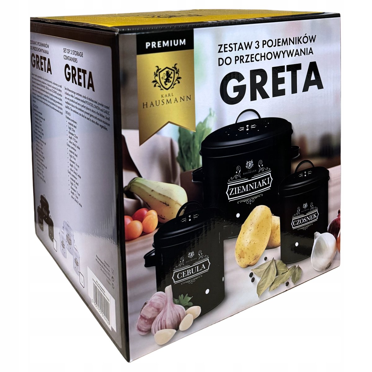 3x POJEMNIK STALOWY NA ŻYWNOŚĆ CZOSNEK CEBULA ZIEMNIAKI ✅ POJEMNIKI DO PRZECHOWYWANIAZestaw trzech pojemników do przechowywania, wykonanych ze stali nierdzewnej - malowanych proszkowo w ...