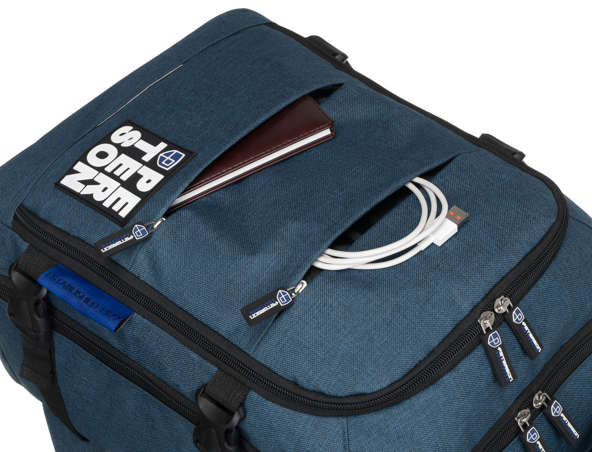 ❇️ Pojemne komory – jedna na ubrania z pasami stabilizującymi, druga na elektronikę, dokumenty i akcesoria.