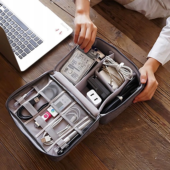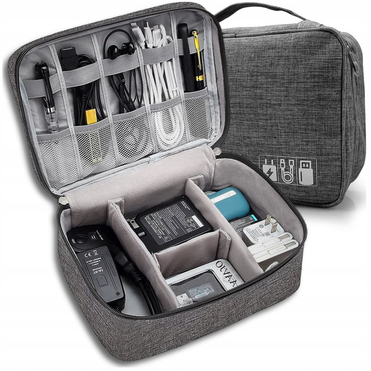 Pokrowiec Etui Organizer na Kable Dysk Zewnętrzny SSD SATA Twardy Przenośny ⭐ Cechy produktuKolor: szary - czarnyWymiary: 24,5 cm x 18,5 cm x 10 cmMateriał: poliester i nylonPodwójny ...