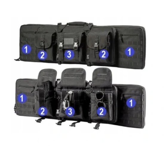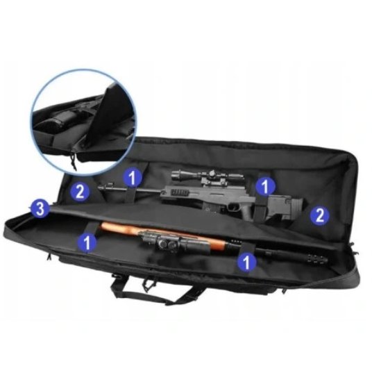 3️⃣Dodatkowa ścianka wypełniona sztywną pianką dla oddzielenia dwóch przewożonych karabinków.