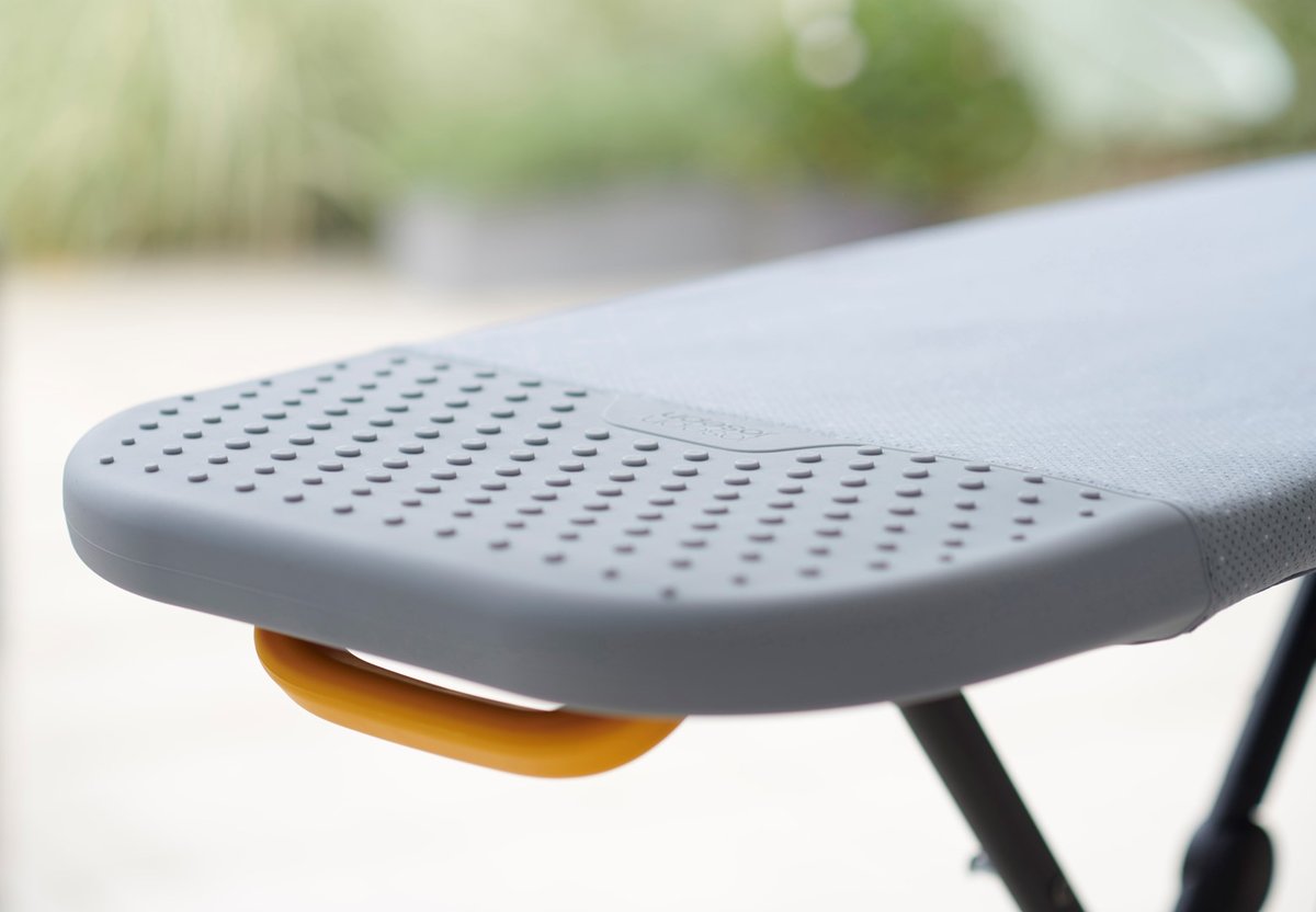 • Posiada dwuwarstwowe poszycie: miękkie i odporne na rozdarcia. • Umożliwia bezpieczne odkładanie żelazka - częściowo silikonowa powierzchnia. • Regulowany - pasuje idealnie na deskę.