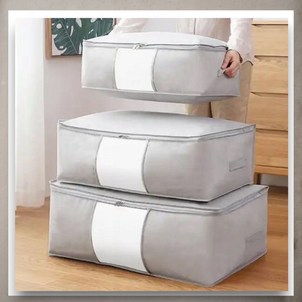 ❇️Masz dość nieustannego chaosu wokół swoich rzeczy? Nasz organizer to nie tylko praktyczne, ale i stylowe rozwiązanie, które nada Twojemu wnętrzu harmonii i elegancji. Planuj, organizuj i zyskaj nowe możliwości dla swojego domu dzięki lepszej organizacji z naszym organizerem. Możesz go przechowywać niemal wszędzie bez zajmowania cennej przestrzeni. Uporządkuj z nami ręczniki, ubrania sezonowe, ubranka dla dziecka, koce, ulubione zabawki i maskotki, duże poduszki, kołdry, wszystkie bardzo duże gabaryty i wszystko, co chcesz schować na chwilę... lub na później.