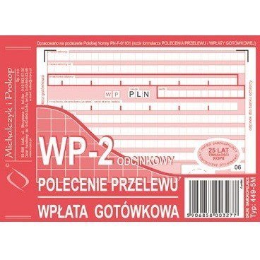 druk, polecenie przelewu rodzaj papieru: samokopiujący format: A6 bloczek 80 kartek druk jednostronny (oryginał + kopia)