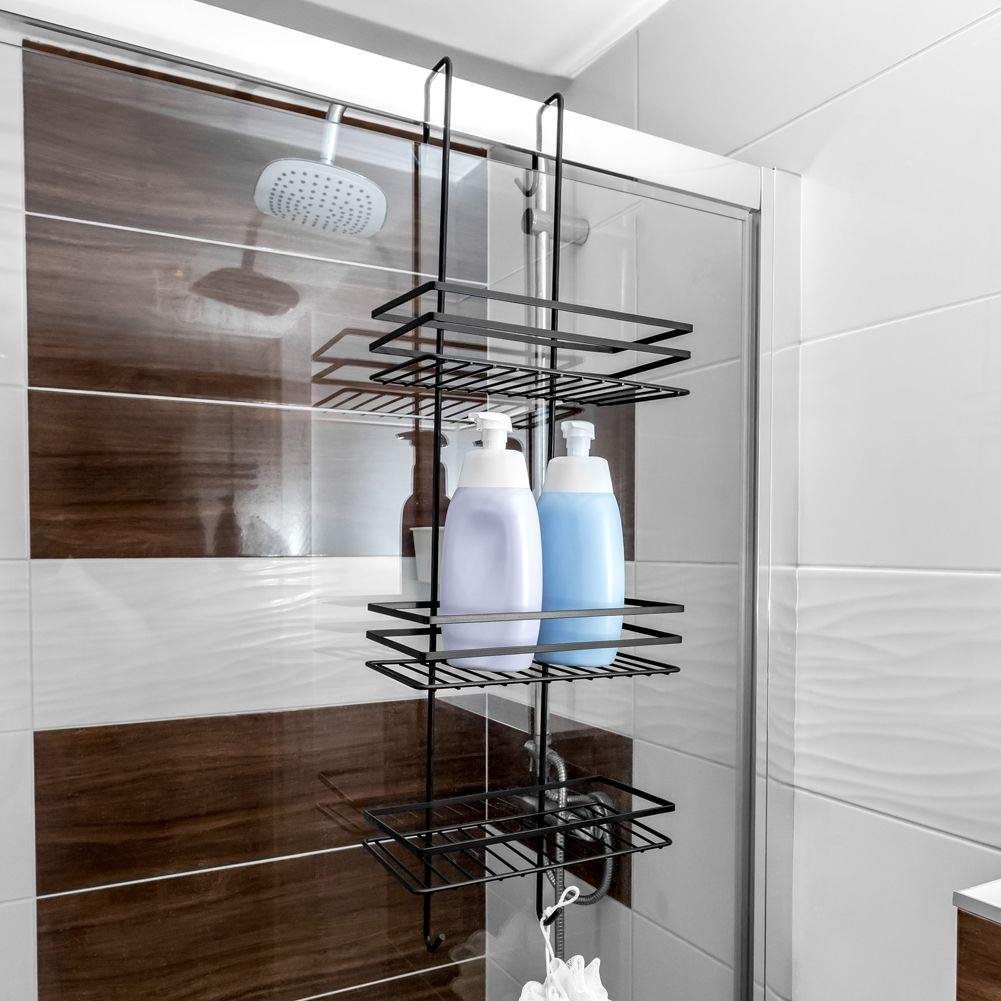 - Wygodna i praktyczna półka łazienkowa. - Przeznaczona do zawieszenia na szybie kabiny prysznicowej. - Posiada trzy półki oraz 4 wieszaki. - Na półkach swoje miejsce znajdą niezbędne rzeczy - mydło,