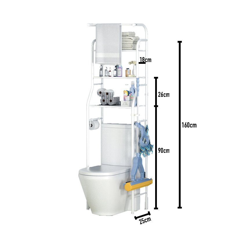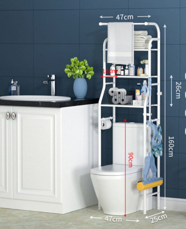 PÓŁKA NAD WC STOJAK 3-poziomowy regał nad WC będzie świetnym rozwiązaniem, aby stworzyć dodatkową przestrzeń w małej łazience lub pralni.Dzięki organizerowi zagospodarujesz niewykorzystaną przestrzeń