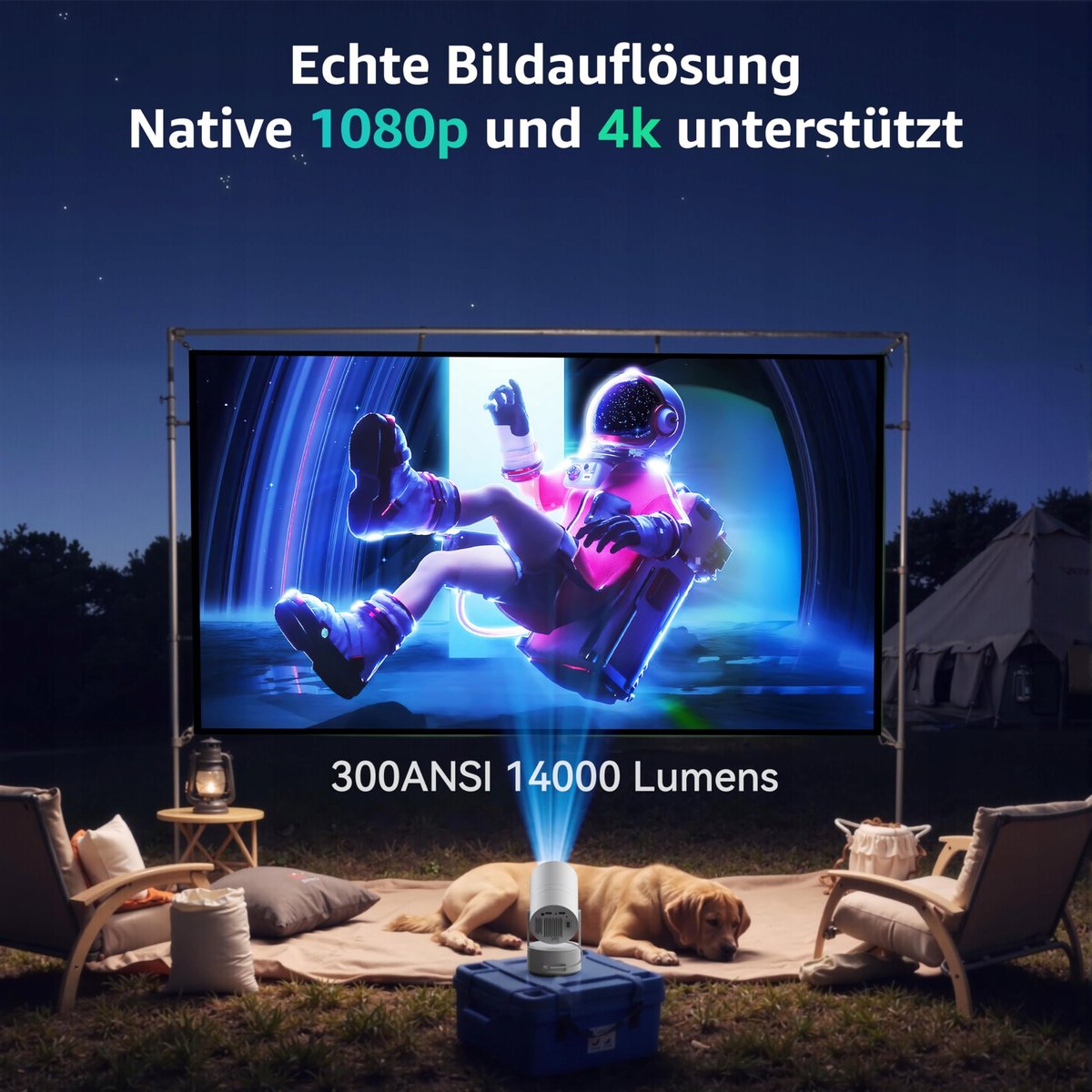 - [270° obrót i przenośny design] 270° obrót sprawia, że projekcja na ścianie/suficie/projekcja w kamperze/projekcja na kempingu na świeżym powietrzu to bułka z masłem. Ponadto mały projektor zewnętrzny ma kompaktowy design i waży tylko 1,3 kg, dzięki czemu możesz go zabrać wszędzie.