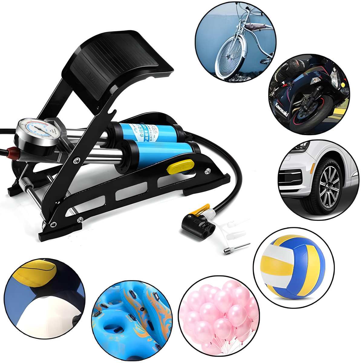 ✔️Uniwersalna pompka nożna dwutłokowa