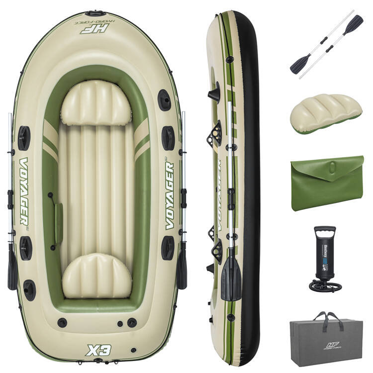 Ponton Voyager X3 Raft Set - zestaw z wiosłami Bestway 65164 ★★★ Dla poszukujących przygód ★★★ przeznaczony dla 3 osób konstrukcja podłogi: I-beam linka bezpieczeństwa wokół pontonu uchwyt na wędkę ...