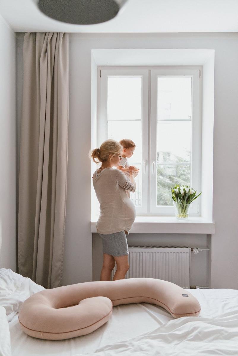 Poduszka dla kobiet w ciąży ma kształt cyfry 9, który idealnie kojarzy się z 9 miesięcznym oczekiwaniem.