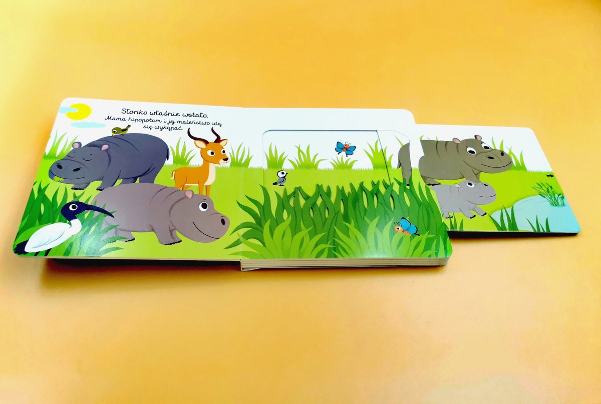 Kolejna książeczka z serii "Pierwsze bajeczki" lubianej przez dzieci ilustratorki Natalie Choux. Bohaterem książeczki jest mały hipcio, który cały dzień spędza na zabawie w wodzie. A po pysznej kolacji zasypia wtulony w mamę. Prosta historyjka, przyjazne ilustracje i ruchome obrazki wspierają rozwój maluchów i rozwijają sprawność manualną.
