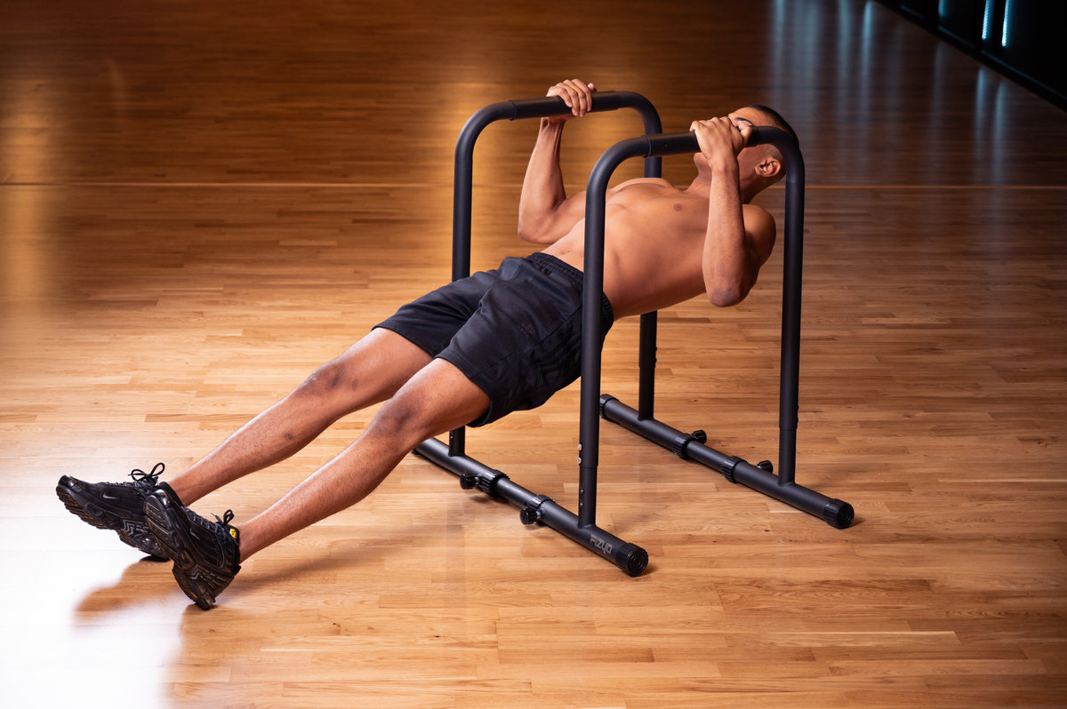 Uniwersalne zastosowanie: Idealne do dipów, pompek, L‑sit, podciągania kolan i ćwiczeń na core w domu, na siłowni czy plenerze.