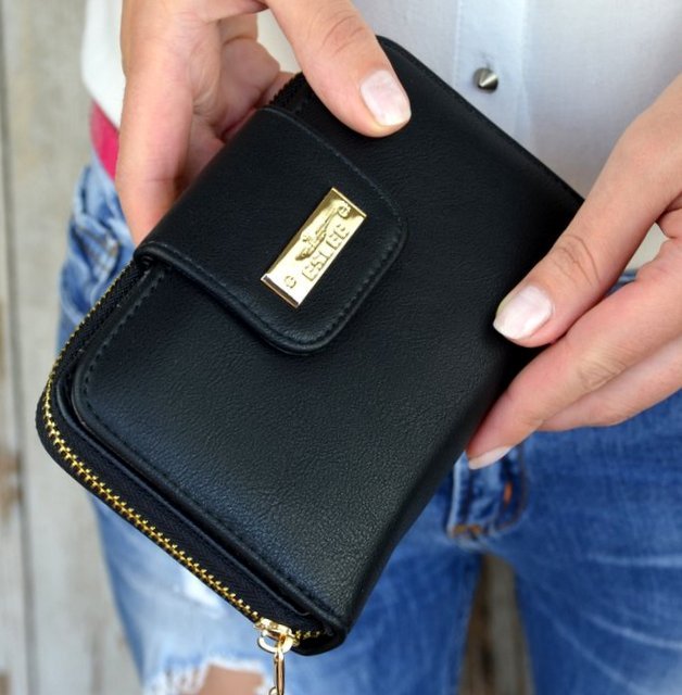 Portfel wykonany z wysokiej jakości ekoskóry zamykany na zamek błyskawiczny oraz zatrzaskPortfel posiada 20 różnych komór i kieszonek: na banknoty, monety, karty bankowe, zdjęcie, dokumenty (m.in. ...