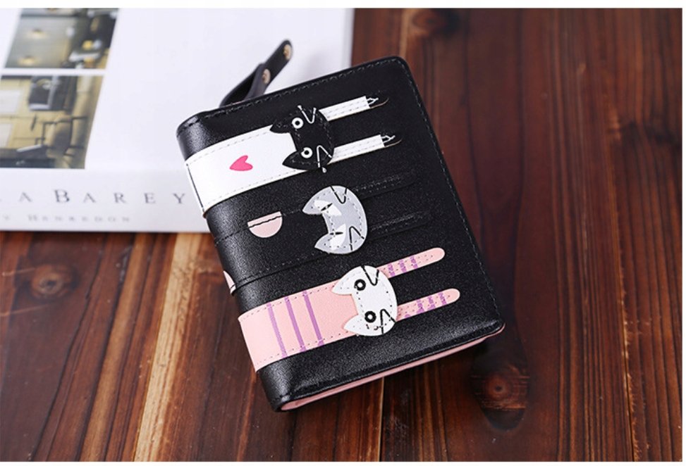 Prześliczny damski portfel z kotkiem Nieprzeciętny wygląd. Idealny dodatek na każdą okazję.Proste wzornictwo idealnie podkreśli naturalne piękno i klasę kobiety. ...
