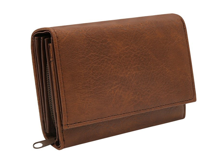 Portfel jest bardzo pojemny, zamykany klapką z bezpiecznym zatrzaskiem. Kieszenie na pieniądze, wyściełane są odporną na otarcia podszewką.