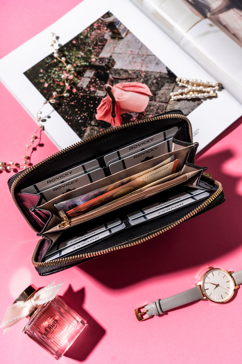 | Nazwa: | Portfel damski Rovicky pojemna portmonetka na suwak duży piórnik na karty i dokumenty, czarny |