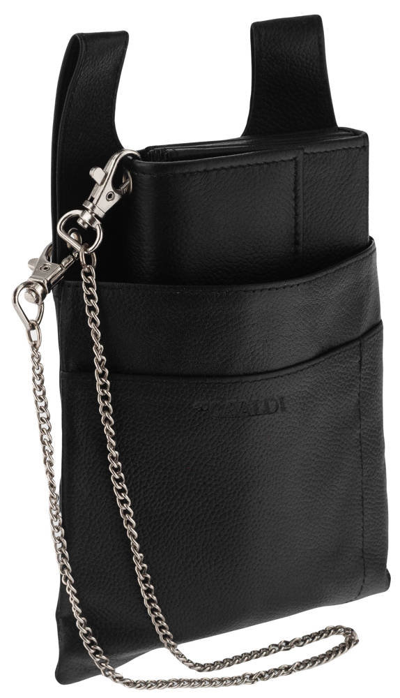 Rewelacyjną opcją jest fakt, że portfel występuje w zestawie z kaburą, lub jak kto woli - etui! :) Te dwa elementy łączą się za pomocą długiego łańcuszka oraz karabińczyków. Od teraz praca w roli Kelnera będzie dużo wygodniejsza, jeżeli zdecydujesz się na ten zestaw! Etui ma także wydzielone miejsce na długopis.