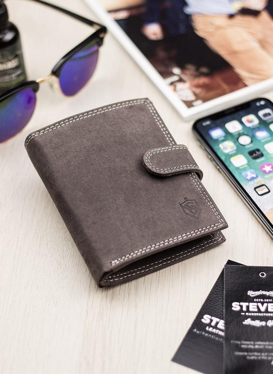 Produkt został wykonany z naturalnej skóry licowej, Jest to najbardziej popularny gatunek skóry używany do produkcji galanterii skórzanej. Skóra naturalna jest wyjątkiem, ponieważ jest garbowana korą wierzby lub brzozy oraz impregnowana olejem brzozowym. Wnętrze portfela zostało wykonane z wysokiej jakości podszewki. Wyroby Stevens są przeznaczone dla osób oczekujących dobrej jakości w interesującej cenie!