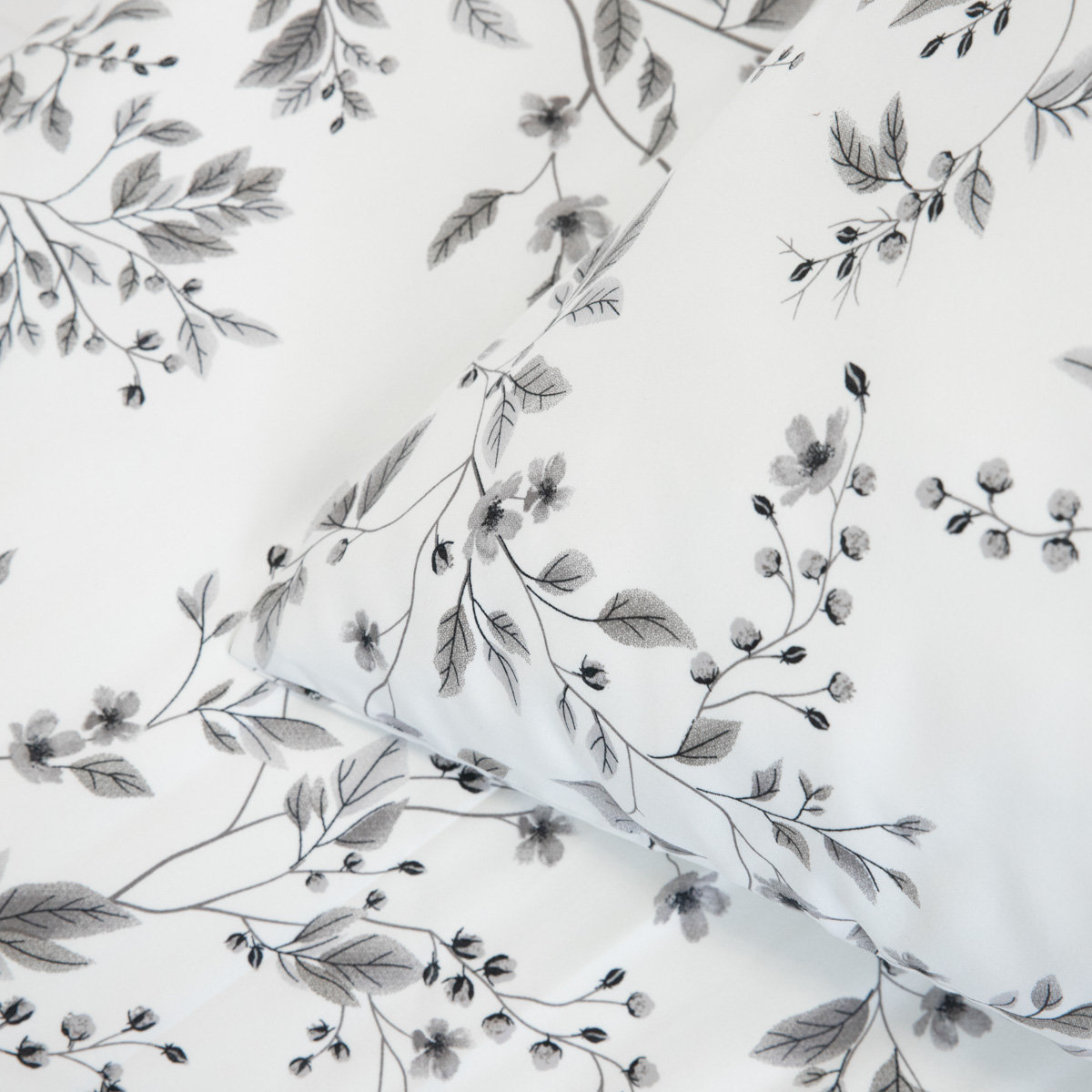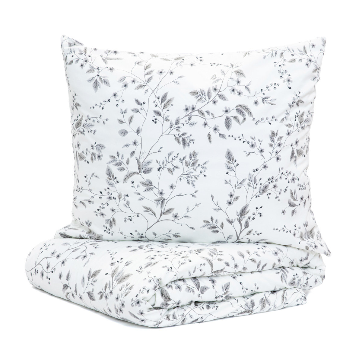 Pościel B2 Bilberry Branch Essentials z mikrofibry biała ze wzorem roślinnym 160x200 cm i 2*70x80 cm HOMLA Pościel | B2 Bilberry Essentials | z mikrofibry biała ze ...
