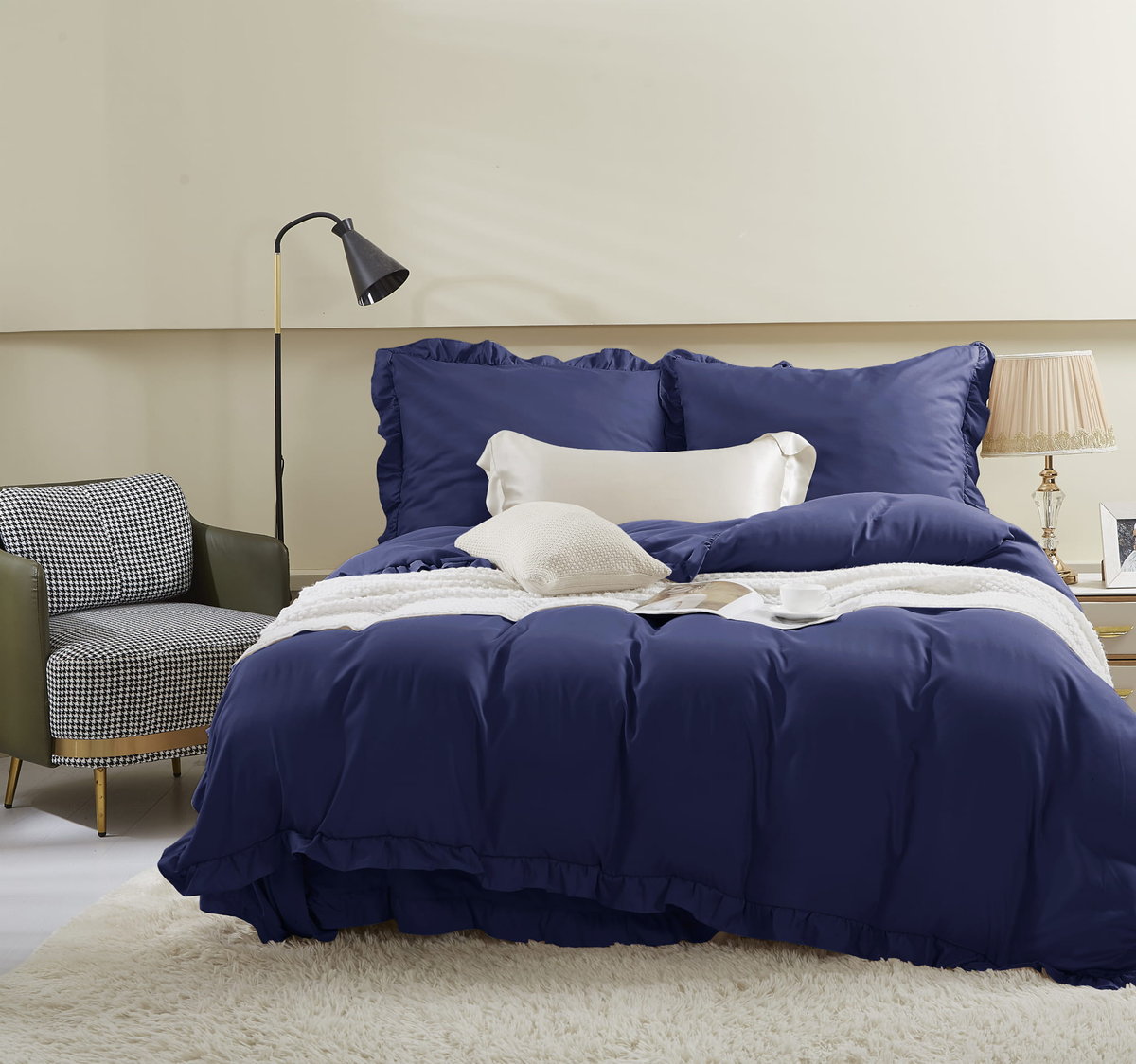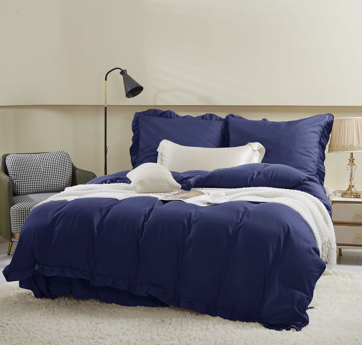 Właśnie zrecenzowałem Pościel Ruffy 160x200 cm granatowa z falbanką Spod Igły i Nitki