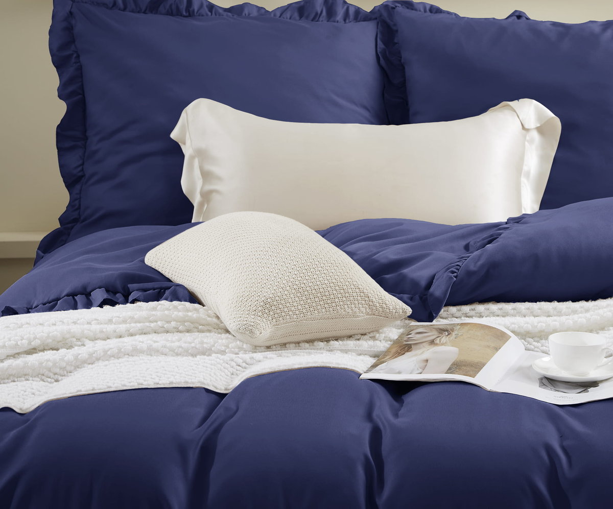 | Nazwa: | Pościel Ruffy 160x200 cm granatowa z falbanką Spod Igły i Nitki |