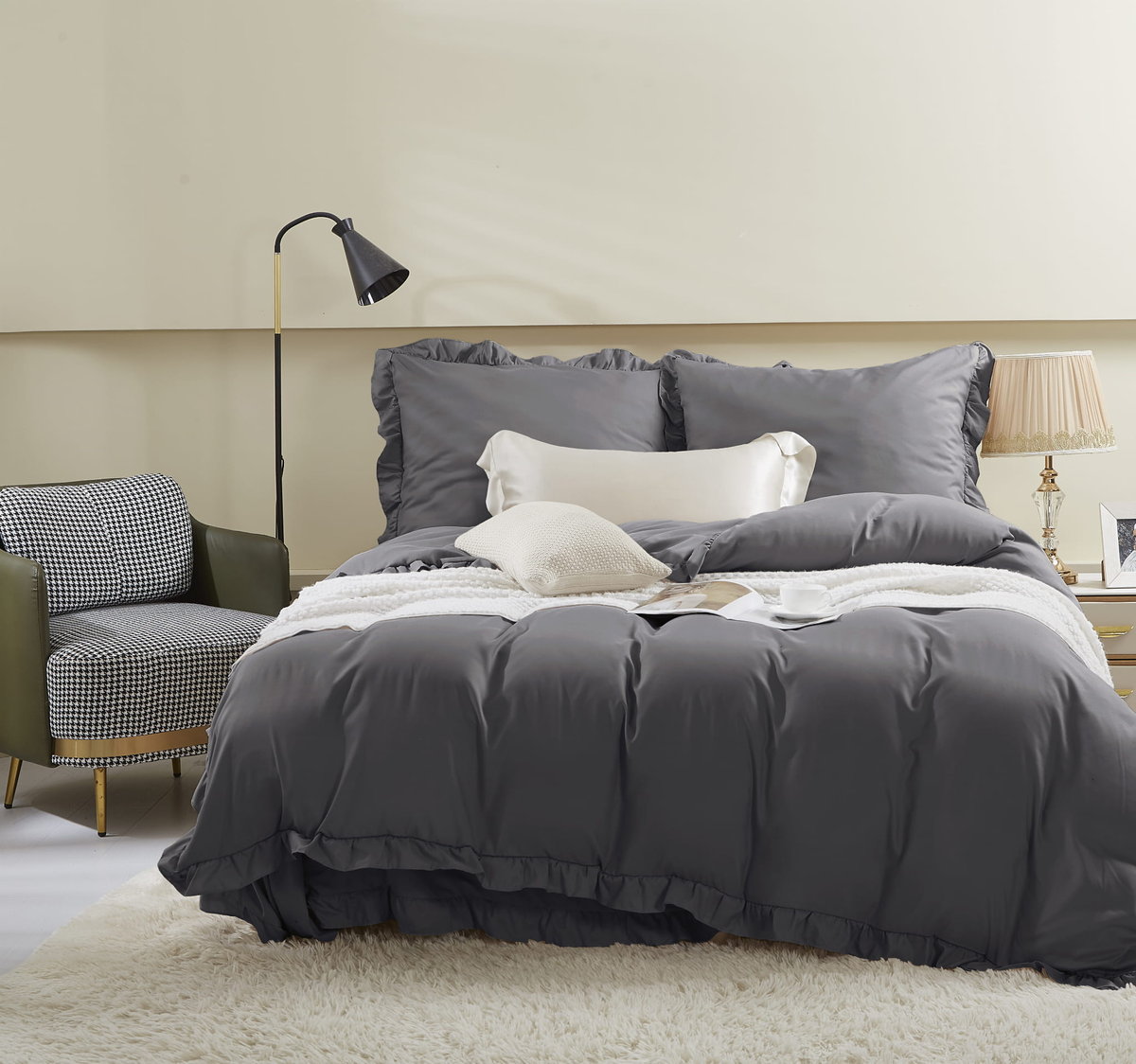 | Nazwa: | Pościel Ruffy 200x220 grafitowa z falbanką |