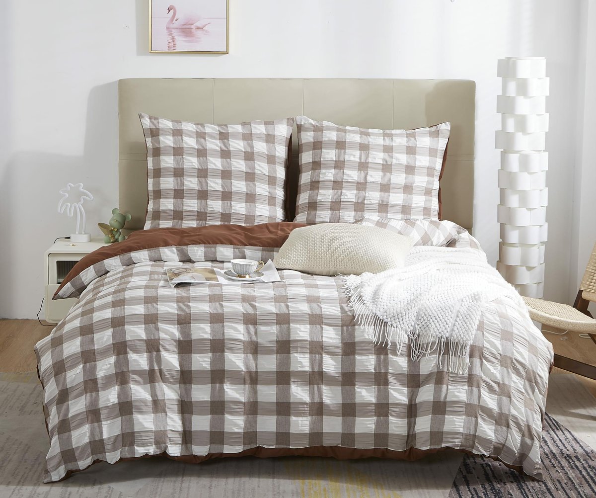 Właśnie zrecenzowałem Pościel 220x200 cm Creasy brązowa kratka marszczona Spod Igły i Nitki