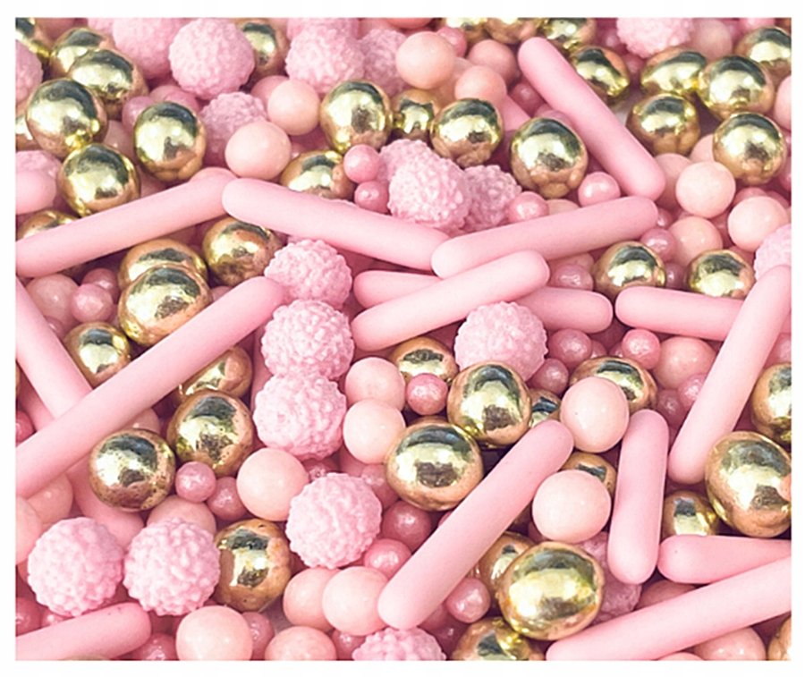 | Nazwa: | POSYPKA ozdoby na tort DEKORACJE perełki MIX URODZINY różowy złoty 30g |
